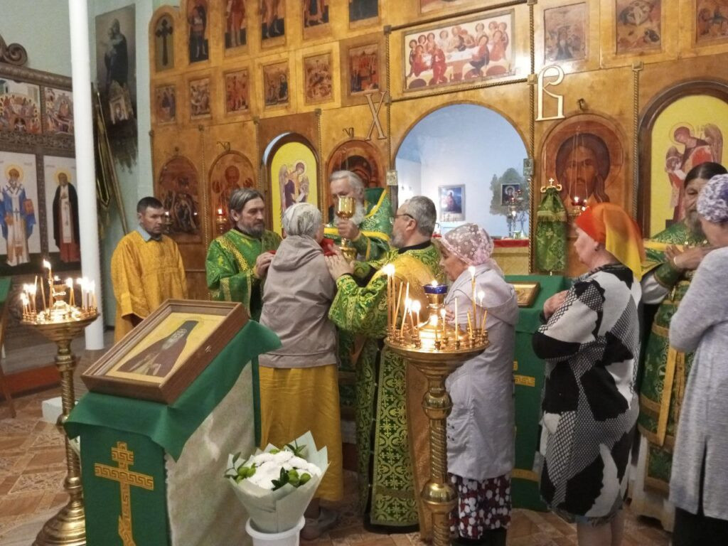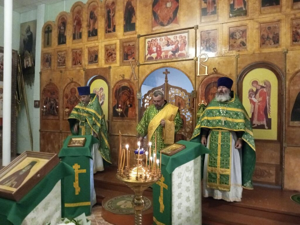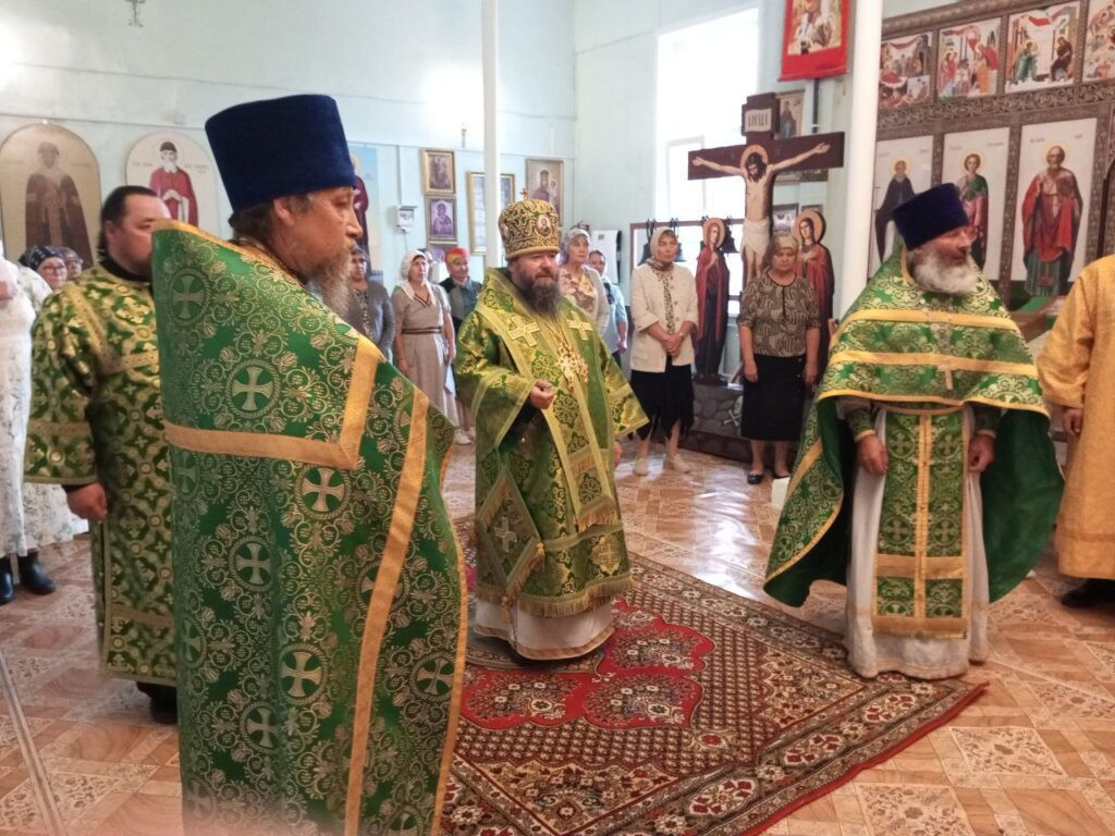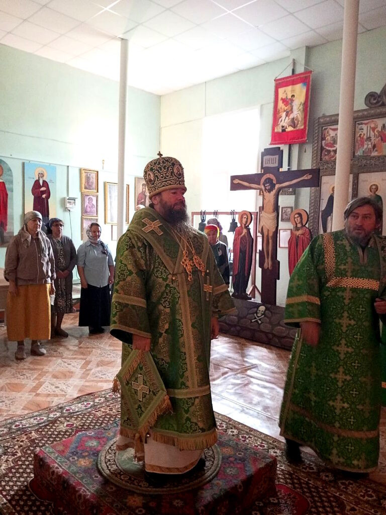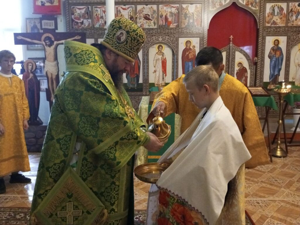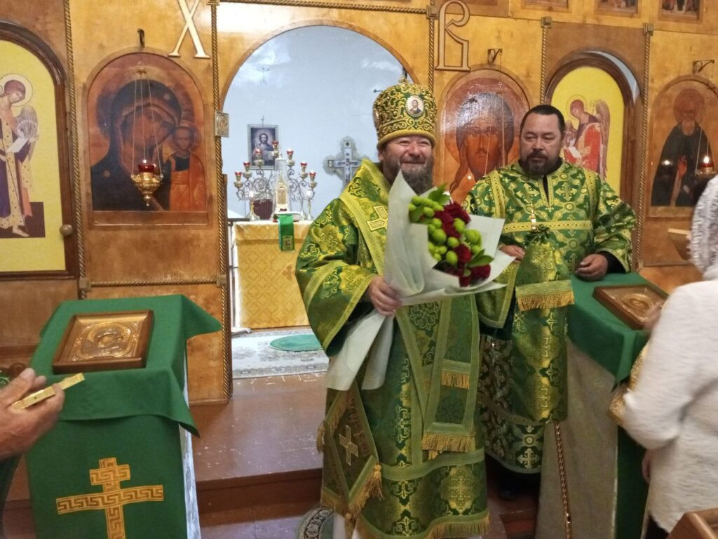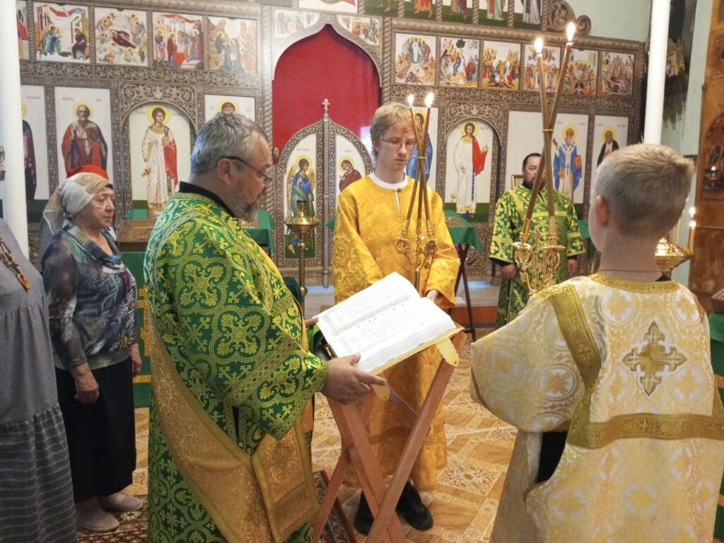 Его Преосвященству сослужили: настоятель храма преподобного Амвросия Оптинского пгт. Первомайский иерей Лев Клюев, настоятель храма святителя Николая Чудотворца пгт. Карымское иерей Валерий Шемелин.